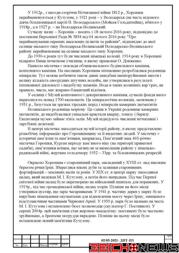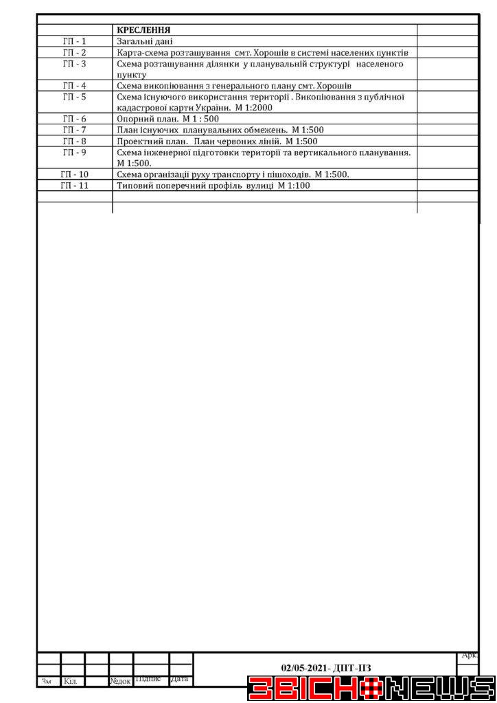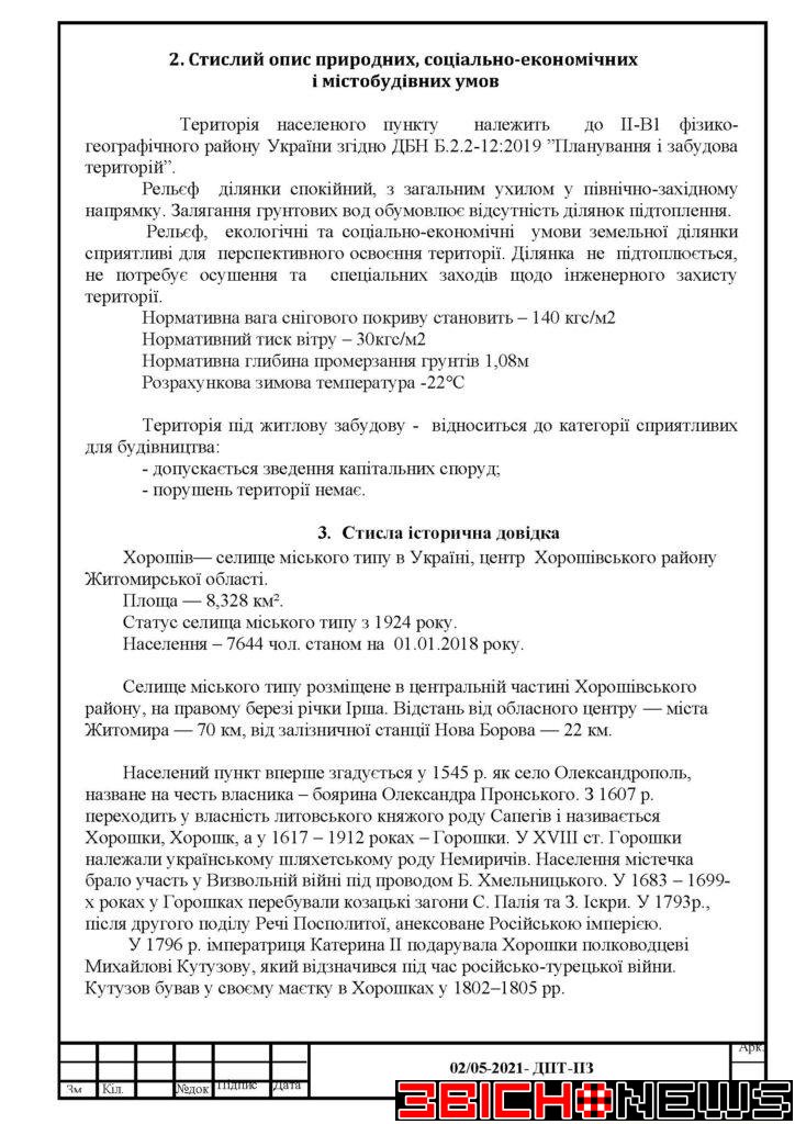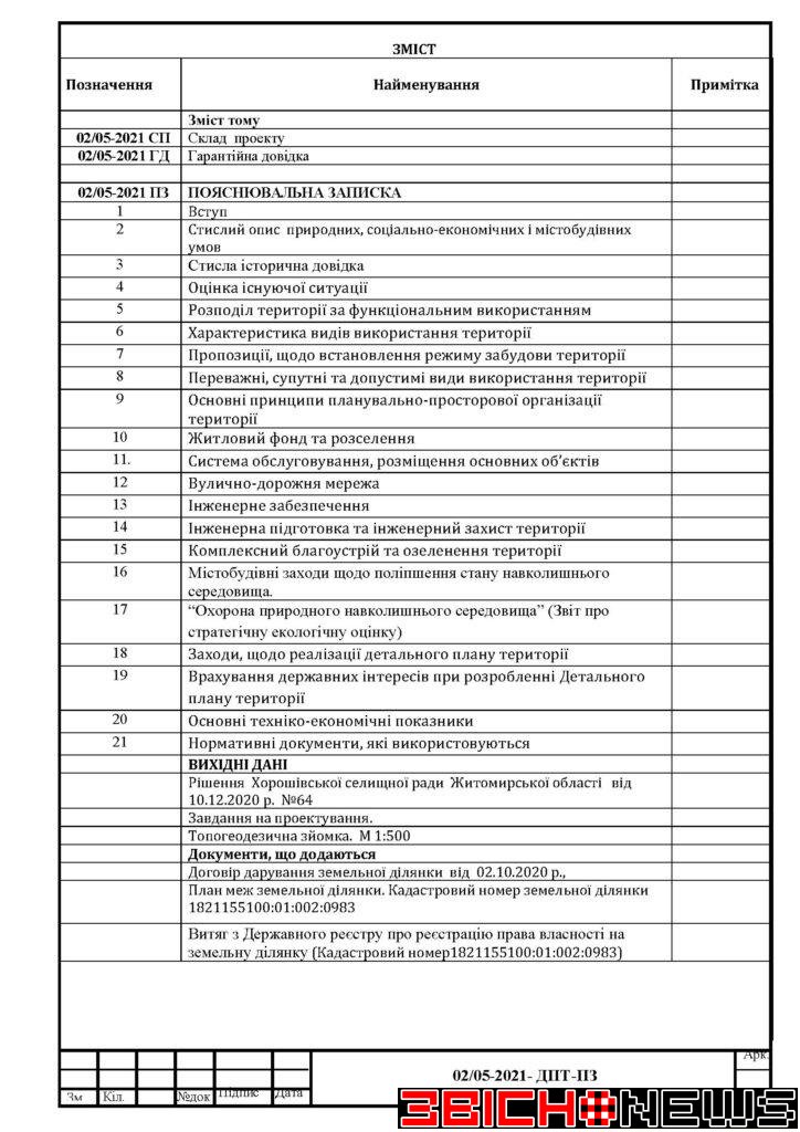 З матеріалами проєкту містобудівної документації можна ознайомитися на офіційному сайті Хорошівської селищної ради та за адресою: смт. Хорошів, вул. Героїв України, 6, Відділ «Центр надання адміністративних послуг Хорошівської селищної ради» (Гомонюк Інна Анатоліївна).