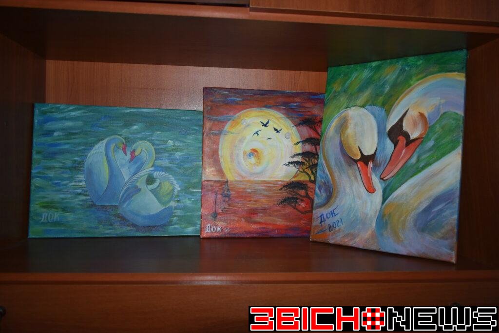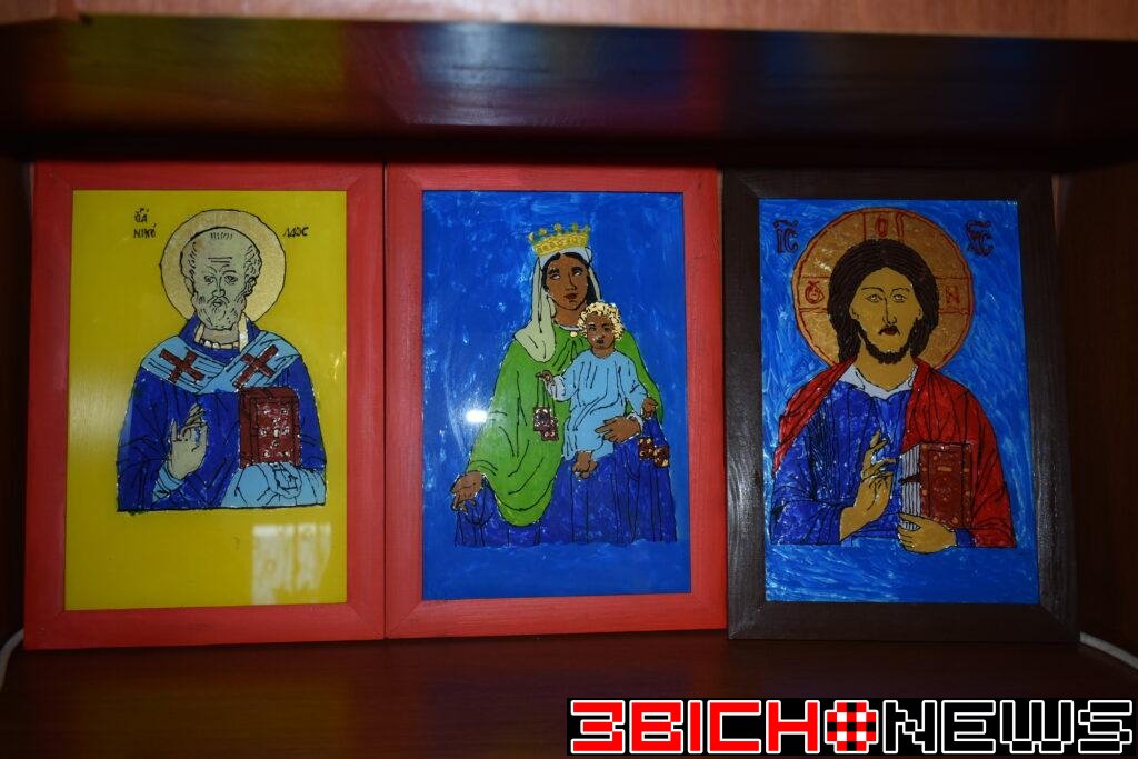 – За все, що у мене є, я дуже вдячний волонтерам, – ділиться Юрій. – Я лікувався у військових госпіталях у Рівненській області, там познайомився із ними. Саме вони і залучали нас до малювання. Я раніше ніколи не малював, але коли не можеш ходити, то це хороший спосіб провести час із користю. У госпіталі нам приносили заготовки з полотна і ми їх розфарбовували. Потім показали техніку малювання на склі. Мені сподобалось. Тому я й вдома продовжив цим займатися. Маю зараз намальовані на склі ікони.