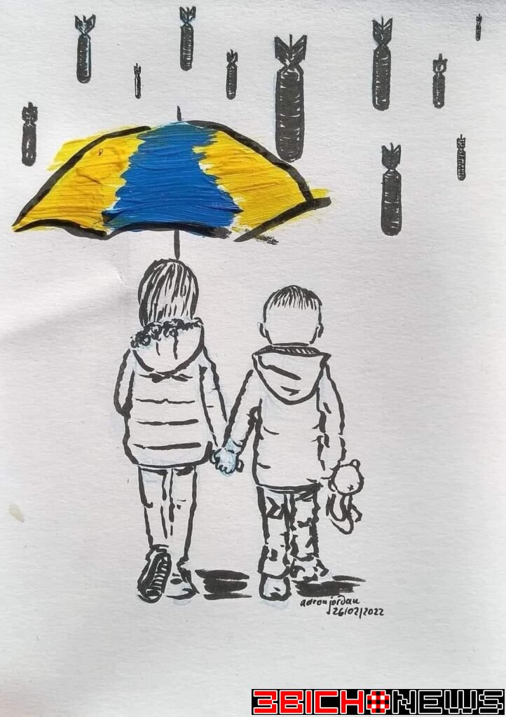 «Гуде сигнал тривоги Проходжу повз кав’ярню. Під дверима стоїть дитина років 5-6 й гойдає візок з меншенькою. Тривога завиває новим витком.