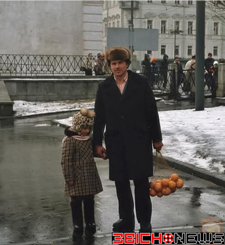 Але головне не це. Зверніть увагу куди і як дівчинка дивиться. Апельсини. В “авосьці”. Знаєте, чому ця сітка так називалася? Чоловікові пощастило: вистоявши довжелезну чергу – он вона на задньому плані, він купив пару кілограмів не надто якісних (якісні йшли в США та Західну Європу) алжирських апельсинів. Два кіло, бо тоді як правило, “давали” по кілограму “в одні руки”. Тому в черги часто дітей з собою брали – щоб більше можна було купити.