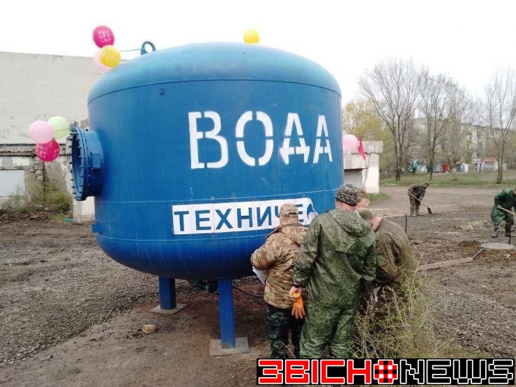 А 21 квітня у тому ж Лисичанську відкрили бак з технічною водою , бо водопостачання як і електропостачання в місті відсутні.Бак урочисто прикрасили повітряними кульками.
