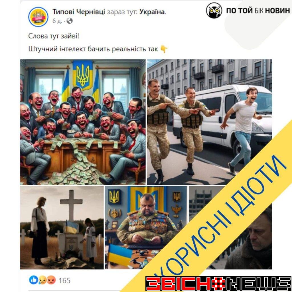 На жаль, не завжди легко відслідкувати автора згенерованих картинок, які показують Україну в негативному світлі. Цілком імовірно, що це робота саме россосісіянців. А власники українських спільнот у соцмережах на кшталт “Буськ онлайн” чи “Типові Чернівці”, які публікують подібне, свідомо чи не ні — підіграють ворогу.