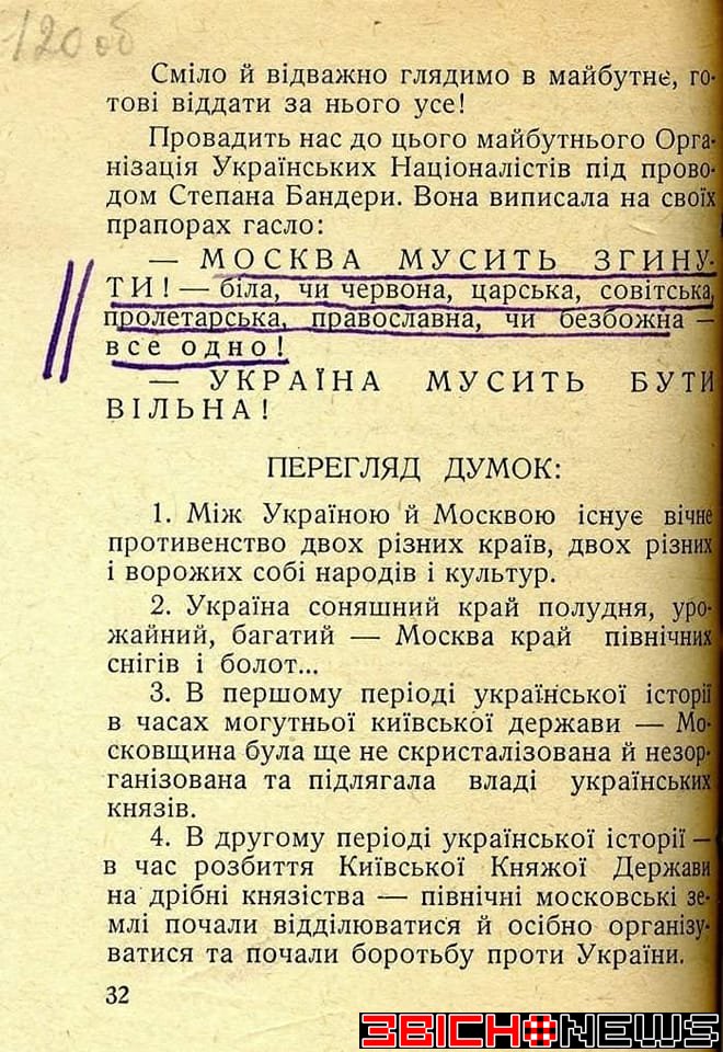 20. Ця боротьба йде не тільки проти комуністичного режиму, проти нової червоної панщини в колективах і інших порядків, не тільки проти московського комунізму й большевизму, але взагалі проти всякої московської влади, проти кожної Москви й кожного чужого панування над Україною, за повне визволення України й усіх поневолених москвою народів.