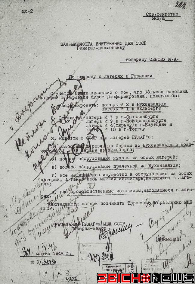 «Аушвіц» був перетворений у в’язницю НКВД. У «Бухенвальді» був організований спецтабір НКВД №2. У «Заксенхаузені» – спецтабір НКВД №7. Концтаборам тупо змінювали вивіски коли приходили нові господарі.