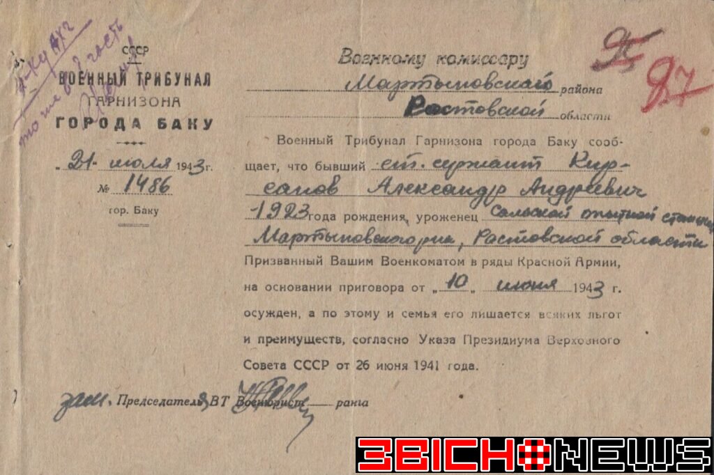 Втрати у Другій світовій війні складались не тільки з тих, хто гинув на фронтах. Близько 170 тисяч військових розстріляли за вироками військових трибуналів. А що було з їх родинами дивіться самі.