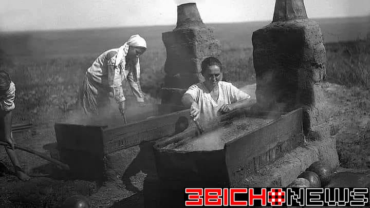 На світлині жінки готують кавуновий бекмес, десь на півдні України, 1931 рік