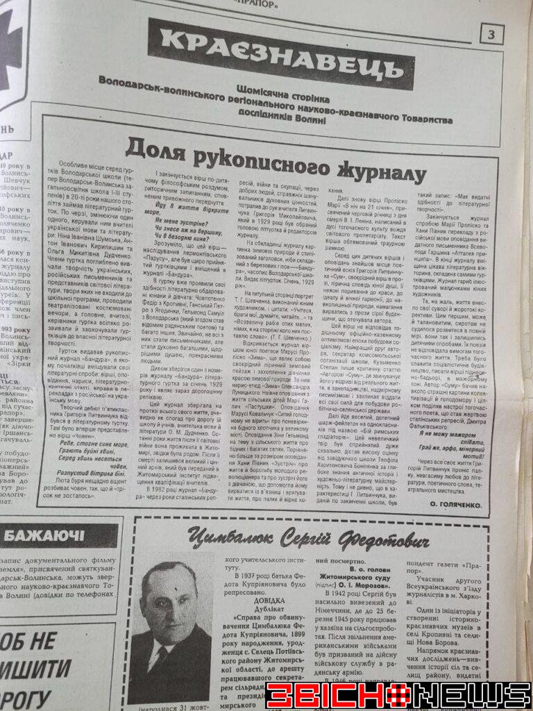 Ось розповідь про Омеляна Любименка, який у 1927-28 роках працював у Дворищенській школі, а пізніше – секретарем Володарськ-Волинського райвиконкому:
