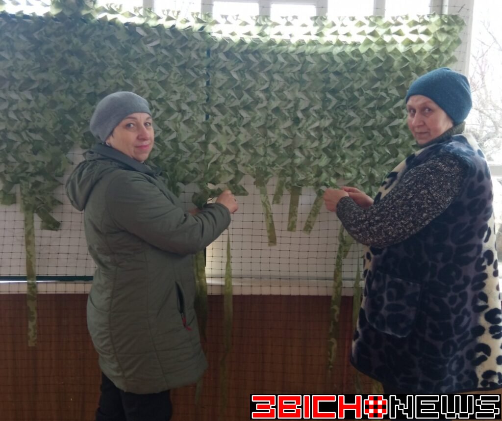 Зараз жінки, які весь час працюють над виготовленням сіток, уже справжні майстрині. А матеріал вони знаходять теж більш якісний. Це спеціальна тканина потрібних кольорів, яка і призначена для виготовлення маскувальних сіток. Її треба розрізати на полоски, які потім заплітаються у сітку. Домовилися із одним із підприємств у Пулинах, і там цілий рулон матеріалу їм розрізають на спеціальному обладнанні. А потім уже кипить робота з плетіння та зшивання фрагментів. У всьому їх підтримують староста Микола Лисюк та працівниця старостату Галина М’янівська.