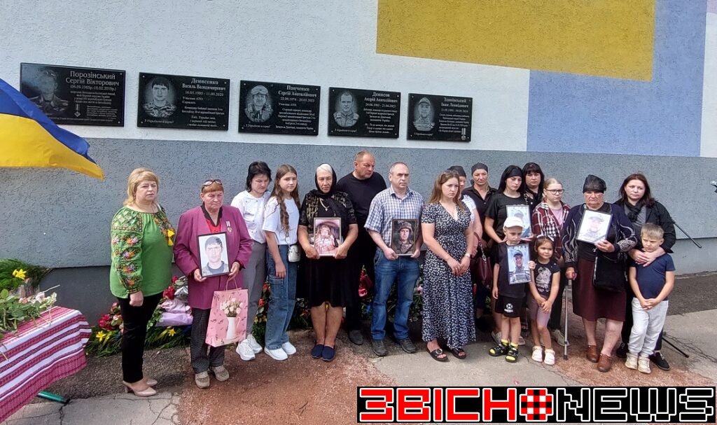 До раніше встановленої дошки Порозінському Сергію, який боронив Батьківщину і загинув у 2015 році, додались ще чотири дошки: Денисенку Василю, Панченку Сергію, Денисову Андрію та Зданівському Івану.