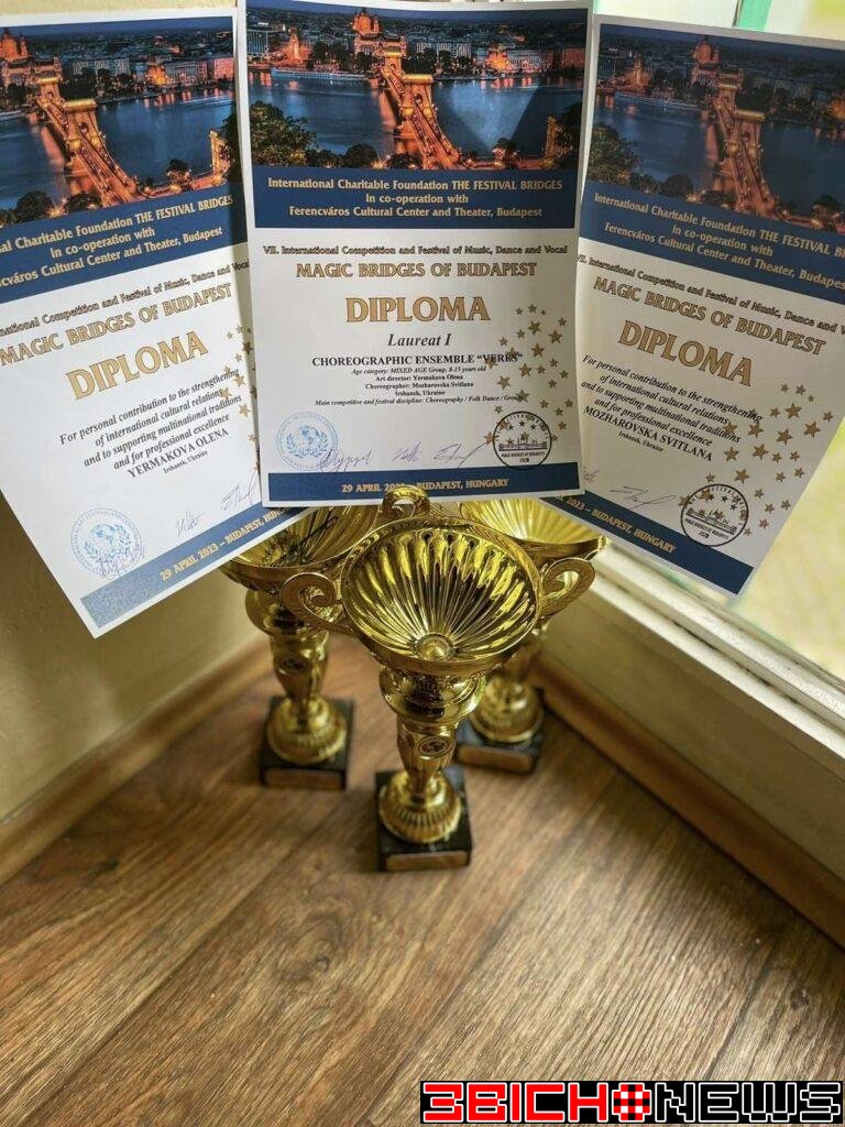 Хореографічний колектив «VERES» Іршанської школи мистецтв (керівники Олена Єрмакова та Світлана Можаровська) 29 квітня в Будапешті в Угорщині взяв участь у Міжнародному конкурсі та фестивалі фольклору, музики і танцю «Чарівні мости Будапешту 2023» і представив Житомирську область. У номінації «Хореографічне мистецтво», жанр «Народний танець» наші танцюристи здобули 1 місце, а в номінації «Сучасний танець» – 3 місце.