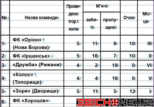 «Колос» (Топорище) – ФК «Іршанськ» – 0:3.